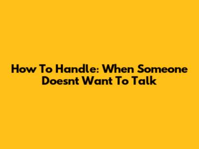 How To Handle: When Someone Doesn't Want To Talk