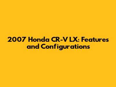 Hey guys! Let's dive into the specifics of the 2007 Honda CR-V LX, a reliable and popular SUV from its time. We'll explore everything from its engine and transmission to its interior features and available options. If you're considering buying one or just curious about its specs, you've come to the right place!
