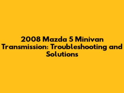 So there you have it – a comprehensive guide to troubleshooting and solving transmission problems in your 2008 Mazda 5 minivan. Remember, regular maintenance and addressing issues early can save you a lot of headaches and money in the long run. Whether it's a simple fluid change or a complete transmission rebuild, understanding the potential issues and solutions will help you keep your Mazda 5 running smoothly for years to come. If you're not comfortable tackling these issues yourself, don't hesitate to consult a professional mechanic. Good luck, and happy driving!