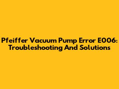 Pfeiffer Vacuum Pump Error E006: Troubleshooting And Solutions