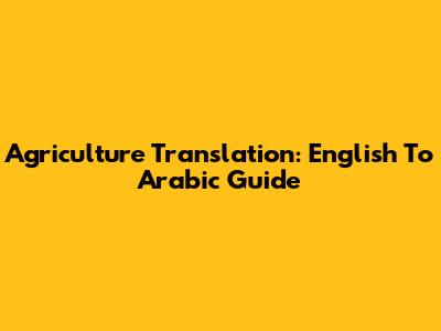 Agriculture Translation: English To Arabic Guide