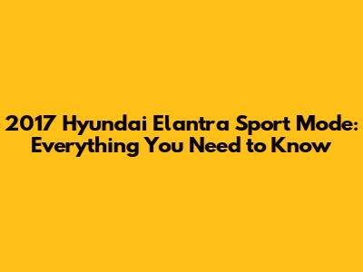 Hey guys! Today, we're diving deep into the 2017 Hyundai Elantra and its super cool Sport Mode. If you're wondering what this feature does, how it changes your driving experience, and whether it's worth using, you're in the right place. Buckle up, and let's get started!