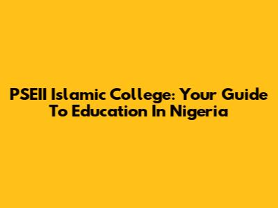 PSEII Islamic College: Your Guide To Education In Nigeria