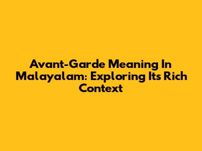 Avant-Garde Meaning In Malayalam: Exploring Its Rich Context