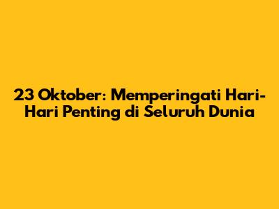 Guys, tanggal 23 Oktober itu bukan cuma sekadar tanggal biasa, lho! Di balik angka-angka itu, ternyata ada banyak sekali peringatan penting yang dirayakan di seluruh dunia. Penasaran kan, ada hari apa aja yang spesial di tanggal ini? Yuk, kita kulik satu per satu!