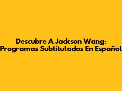 Descubre A Jackson Wang: Programas Subtitulados En Español