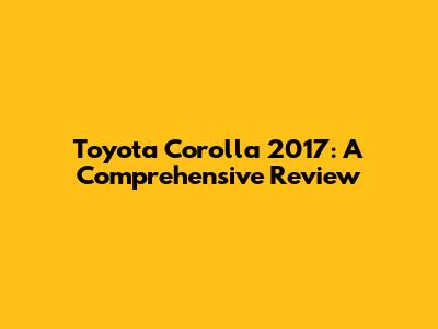 Toyota Corolla 2017: A Comprehensive Review