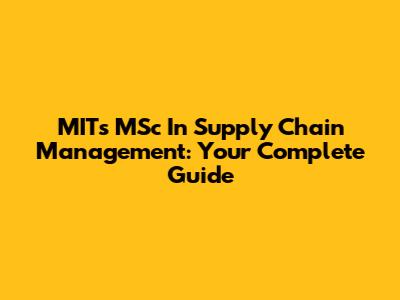 MIT's MSc In Supply Chain Management: Your Complete Guide