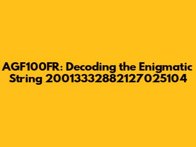 Have you ever stumbled upon a seemingly random string of numbers and letters and wondered what it could possibly mean? Today, we're diving deep into the mystery of AGF100FR and the numerical sequence 20013332882127025104. These types of alphanumeric codes often appear in various contexts, from product identifiers to internal tracking codes, and even as part of complex algorithms. Understanding what they represent can unlock valuable information, offering insights into product specifications, manufacturing dates, or even the intricacies of a particular system. So, let's embark on this decoding journey and see if we can unravel the secrets behind this enigmatic string.
