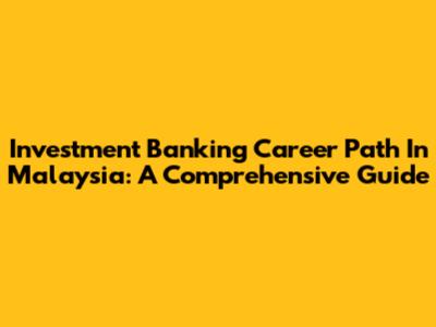 Investment Banking Career Path In Malaysia: A Comprehensive Guide