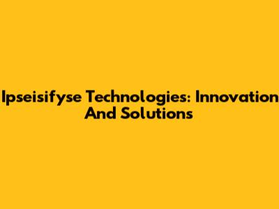 Ipseisifyse Technologies: Innovation And Solutions