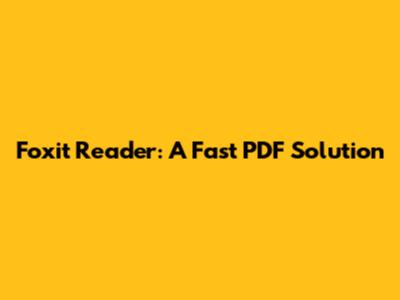 Foxit Reader: A Fast PDF Solution