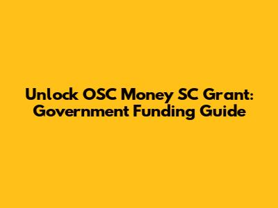 Unlock OSC Money SC Grant: Government Funding Guide