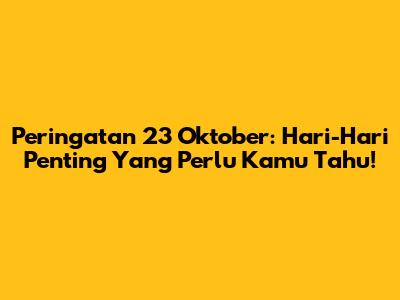 Peringatan 23 Oktober: Hari-Hari Penting Yang Perlu Kamu Tahu!