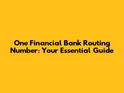 One Financial Bank Routing Number: Your Essential Guide