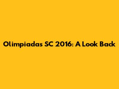 Olimpiadas SC 2016: A Look Back