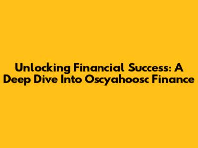 Unlocking Financial Success: A Deep Dive Into Oscyahoosc Finance
