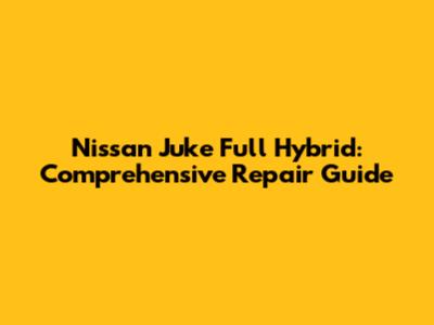 Nissan Juke Full Hybrid: Comprehensive Repair Guide