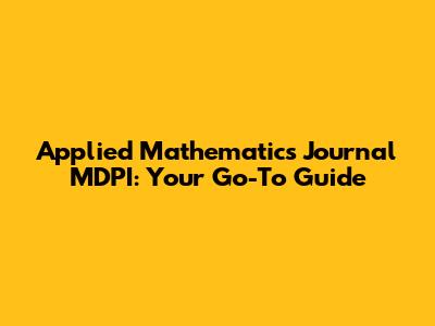 Hey everyone! Today, we're diving deep into the world of applied mathematics and taking a close look at the Applied Mathematics journal published by MDPI. If you're a student, researcher, or just a math enthusiast like me, you're in the right place! We'll explore what makes this journal a key player in the academic world, the types of articles it publishes, and how you can get involved. Think of this as your one-stop guide to everything you need to know about this awesome journal.