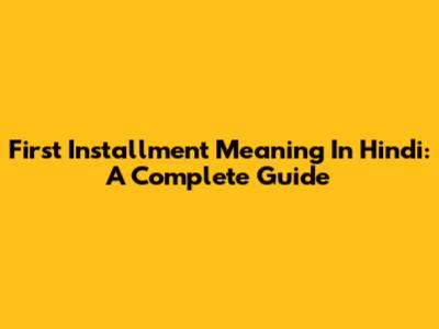First Installment Meaning In Hindi: A Complete Guide