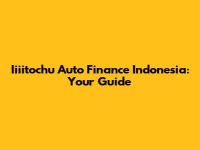 Iiiitochu Auto Finance Indonesia: Your Guide