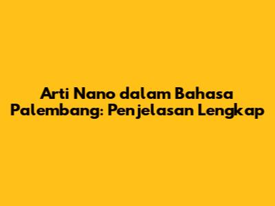 Arti Nano Dalam Bahasa Palembang: Penjelasan Lengkap