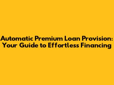 Hey guys! Ever heard of automatic premium loan provision? If you're into the world of life insurance, you probably have. But if you're new to the game, no worries! This article is all about breaking down what it is, how it works, and why it's a total game-changer for keeping your life insurance policy in tip-top shape. We're going to dive deep, so grab a coffee (or your favorite beverage), and let's get started. Understanding this concept is key to ensuring your policy remains active and your loved ones are protected. We'll cover everything from the basics to the nitty-gritty details, helping you navigate the financial landscape with confidence. So, let’s unravel the mysteries of automatic premium loan provision together!