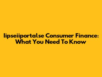Iipseiiportalse Consumer Finance: What You Need To Know