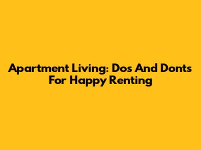 Apartment Living: Dos And Don'ts For Happy Renting