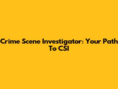 Crime Scene Investigator: Your Path To CSI
