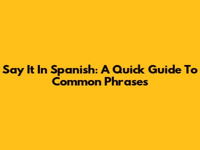 Say It In Spanish: A Quick Guide To Common Phrases