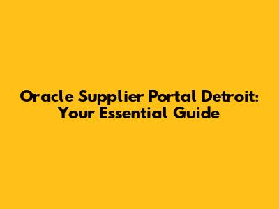Oracle Supplier Portal Detroit: Your Essential Guide