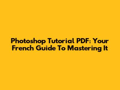 Photoshop Tutorial PDF: Your French Guide To Mastering It