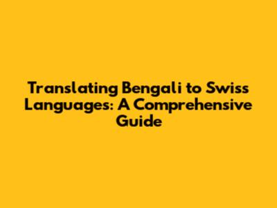Translating Bengali to Swiss Languages: A Comprehensive Guide