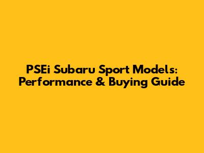 PSEi Subaru Sport Models: Performance & Buying Guide