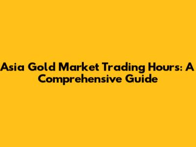 Asia Gold Market Trading Hours: A Comprehensive Guide