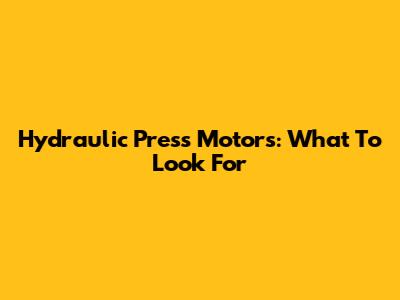 Hydraulic Press Motors: What To Look For