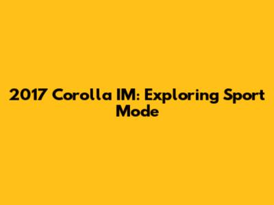 2017 Corolla IM: Exploring Sport Mode