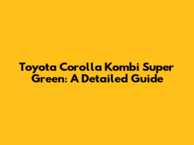 Toyota Corolla Kombi Super Green: A Detailed Guide