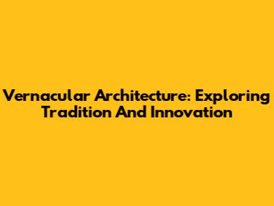 Vernacular Architecture: Exploring Tradition And Innovation