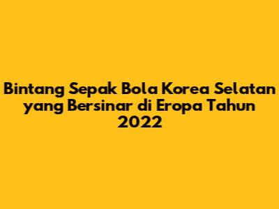 Bintang Sepak Bola Korea Selatan Di Eropa Tahun 2022
