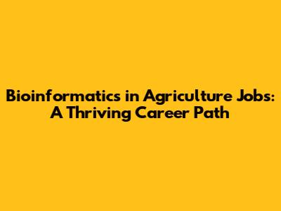 High-Demand Jobs in Bioinformatics and Agriculture