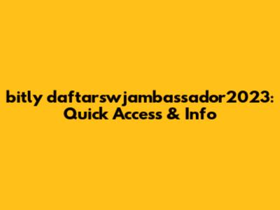 Hey guys! Ever stumbled upon a link that looks like a bunch of random letters and numbers and wondered where it leads? Yep, that's likely a shortened URL, and today, we're diving deep into one such link: bitly daftarswjambassador2023. We'll break down what it is, why you might encounter it, and how to handle it safely. So, buckle up and let's get started!