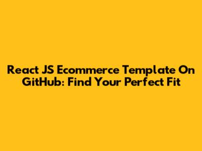 React JS Ecommerce Template On GitHub: Find Your Perfect Fit