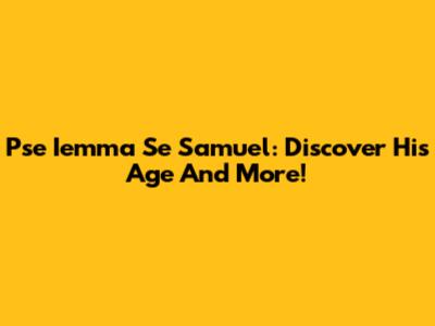 Pse Iemma Se Samuel: Discover His Age And More!