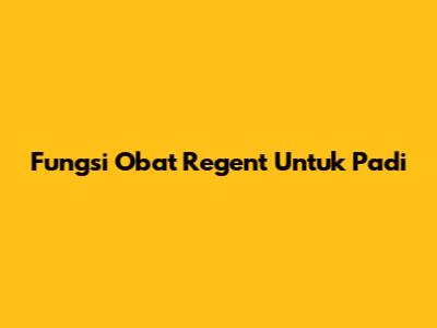 Fungsi Obat Regent Untuk Padi