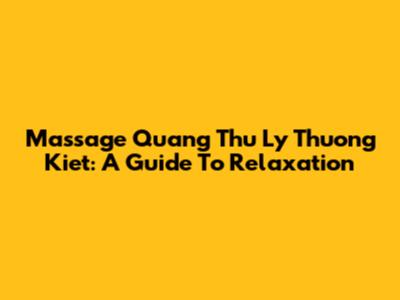 Massage Quang Thu Ly Thuong Kiet: A Guide To Relaxation