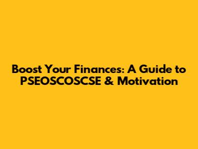 Hey everyone! Let's dive into something super important: finances! But not just any finances, we're going to explore how we can optimize our financial health using the concepts of PSEOSCOSCSE (let's break that down later, don't worry!) and the power of motivation. It's all about getting your money game on point and staying pumped up to achieve your financial dreams. This guide is designed to be your friendly companion on this journey, breaking down complex topics into easy-to-digest bits, and sprinkling in some practical tips you can use right away. So, whether you're a seasoned investor, just starting out, or simply looking to manage your money better, this is for you. Get ready to level up your financial life! We'll cover everything from budgeting and saving to investing and debt management, all while keeping that motivational fire burning bright. Ready to get started?