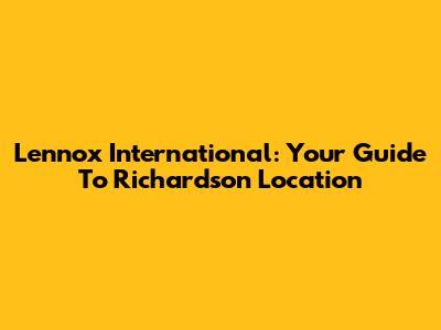 Lennox International: Your Guide To Richardson Location