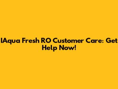 IAqua Fresh RO Customer Care: Get Help Now!